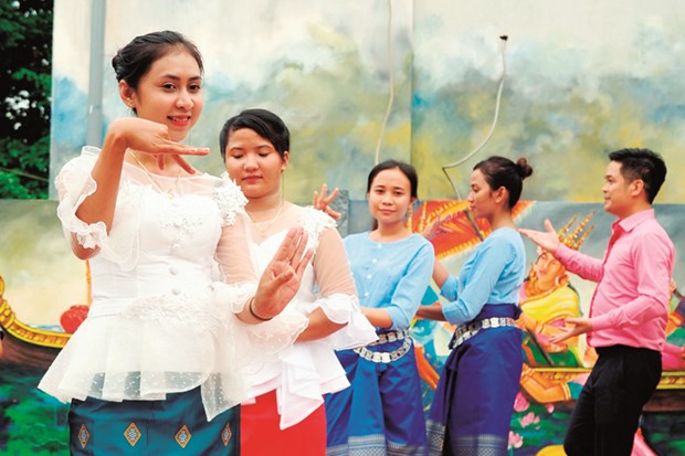 Thiếu nữ Khmer trình diễn điệu múa truyền thống tại Làng văn hóa du lịch Khmer ở xã Lương Hòa, huyện Châu Thành (Trà Vinh) – Ảnh: Phúc Thanh (chụp trước khi bị dịch)