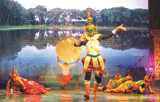 Một hoạt cảnh độc đáo của đội văn nghệ Trường Đại học Trà Vinh tại Ngày hội Văn hóa – Thể thao và Du lịch đồng bào Khmer Nam Bộ. Ảnh: Yến Thanh