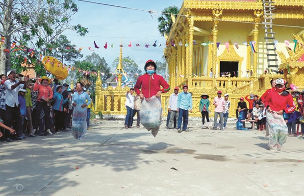 Các trò chơi dân gian được tổ chức nhân dịp Tết cổ truyền Chôl Chnăm Thmây ở chùa Cái Đuốc Lớn, xã Ngọc Chúc, huyện Giồng Riềng (Kiên Giang) – Ảnh: Danh Lợi (HA chụp trước khi bị dịch)